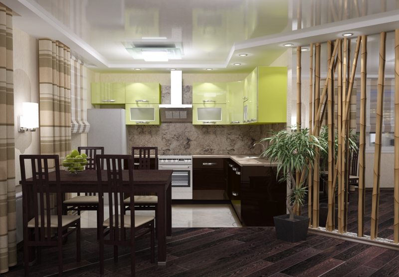 Идеально подойдут бамбуковые шторы не очень ярких тонов.