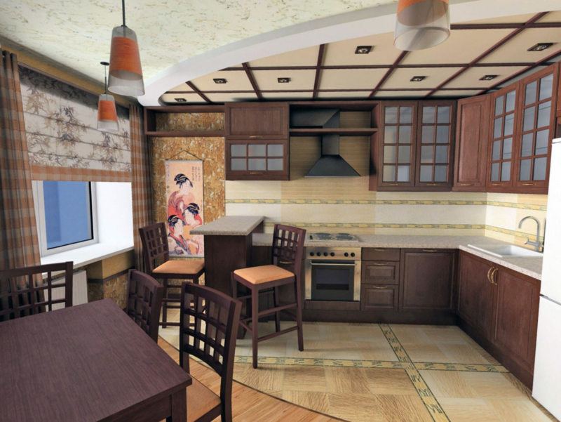 Полы, потолок и стены. Декор кухни в китайском стиле.