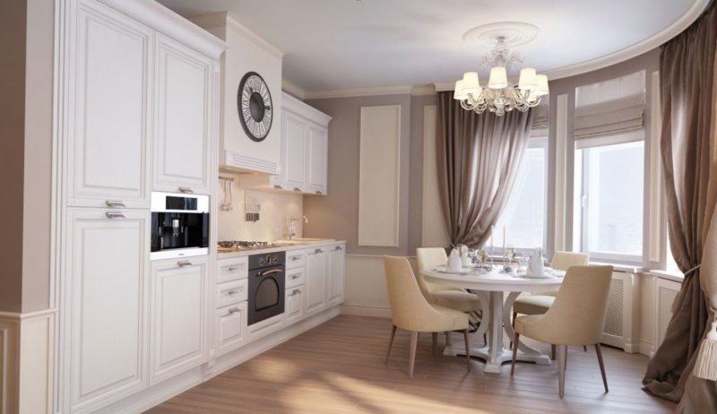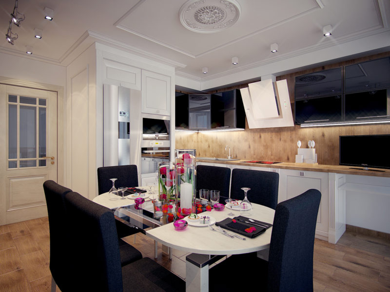 Стоит отметить, что кухни данного стиля получаются в более строгих тонах, но подчеркивающие каждую деталь в своем интерьере.