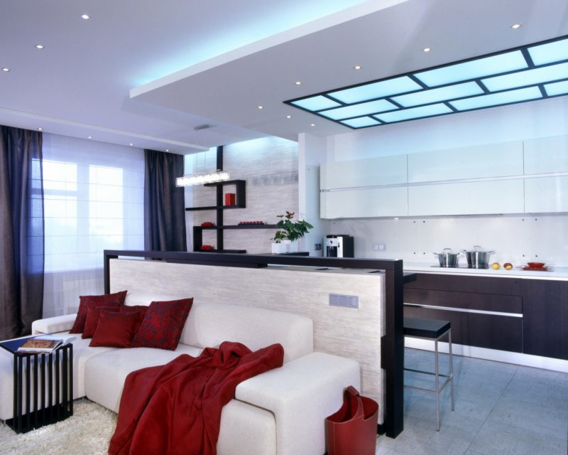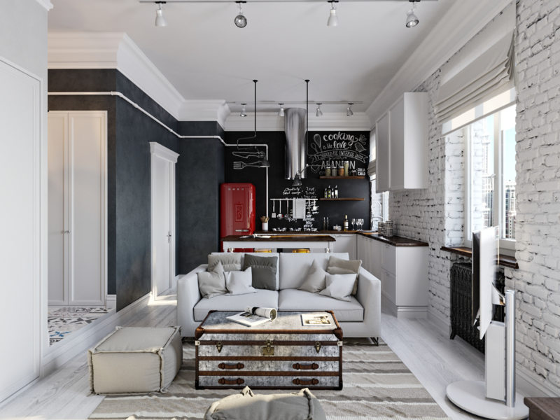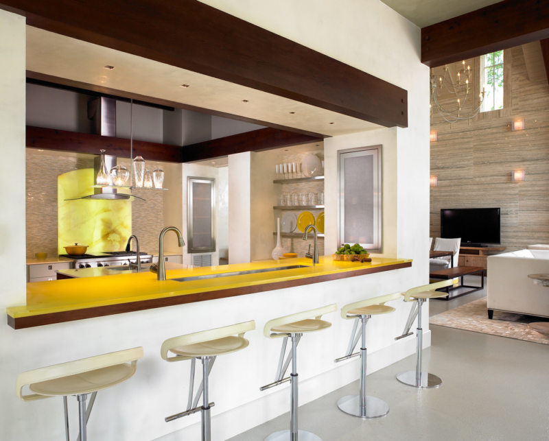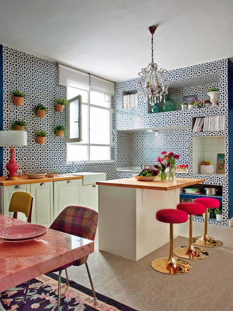Если после некоторых дополнений в интерьере у вас осталось немного пространства, то ее можно заполнить барной стойкой, которая отлично будет подходить данному стилю, делая его более современным и молодежным.