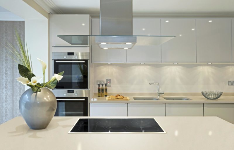Очень удобная, надежная, а также оригинальная, которая отлично подойдёт для столешницы покрытие, это каменная. Для визуального увеличения пространства можно фартук изготовить из стекла или пластика.
