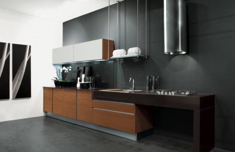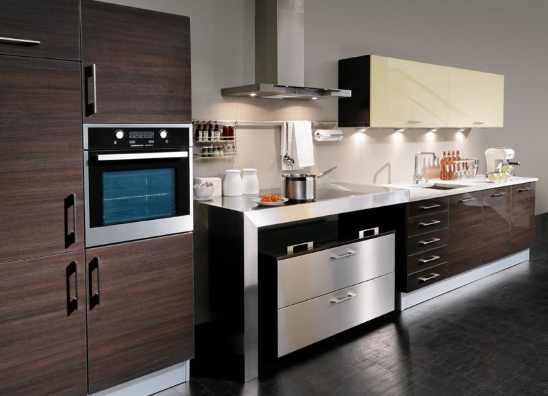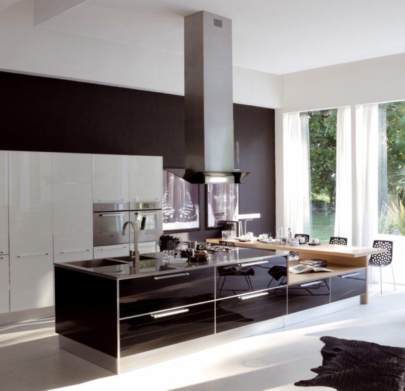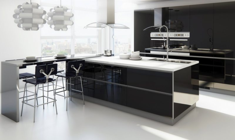 Важно помнить, что черный цвет необходимо применять в сочетании со светлыми оттенками, иначе кухня приобретет мрачный неуютный вид. Этот цвет отлично комбинируется со стальными элементами. Так же для ощущения гармоничности интерьера, желательно приобретать бытовую технику с металлическими деталями оформления.