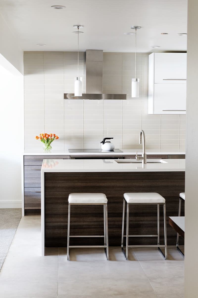 Так же возможен вариант зонирования цветом, резко контрастирующим с преобладающей гаммой. Лучшие примеры стиля модерн в интерьере кухни представлены на интернет-сайте: