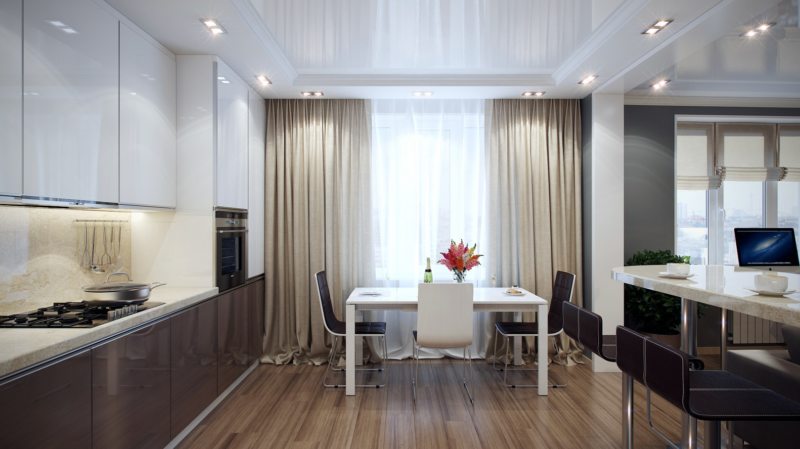 При наличии барной стойки желательно усилить акцент на этой зоне, выделив ее отдельными светильниками расположенными непосредственно над ней.