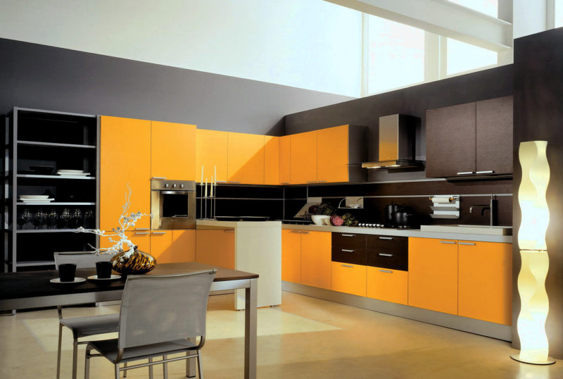 Кухня в стиле модерн подразумевает насыщенность красок. Самыми часто применяемыми в интерьере оттенками являются: