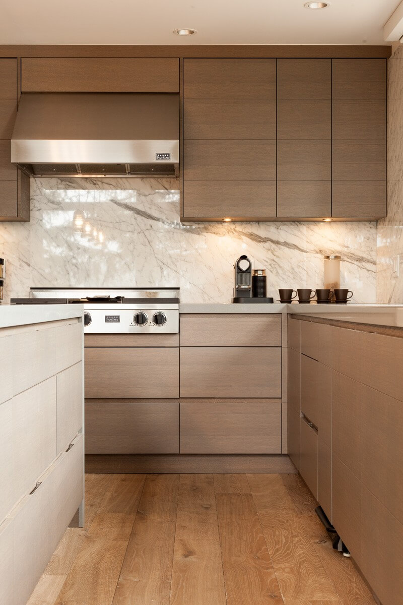 Бытовая техника используется встроенная, в корпусе, что идеально подходит под цвет мебели.