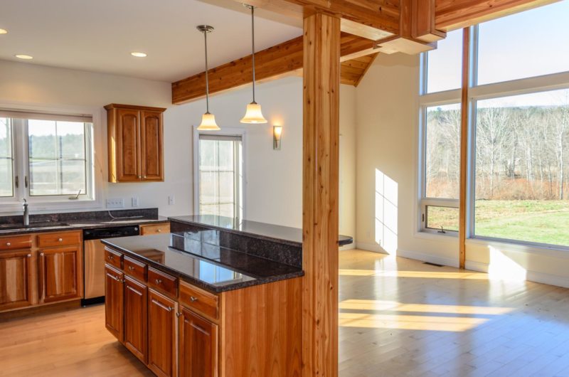 Отличительная черта стиля – использование балок в оформлении стеновых поверхностей и потолка. Балка может быть как деревянная, так и имитация. Цвета балки совпадают с цветовой гаммой комнаты, либо же выступает как контраст.