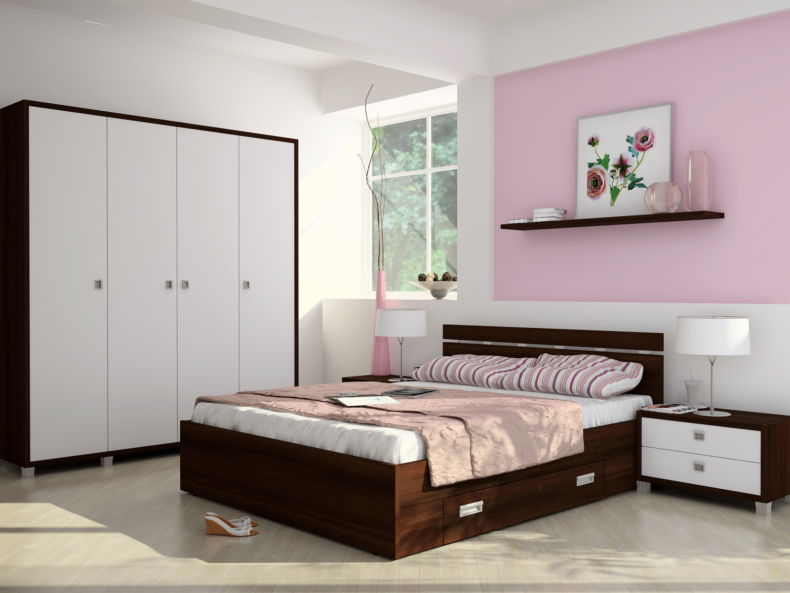 Если помещение довольно-таки темное, рекомендуем выбирать светлую мебель для обстановки спальной комнаты. Благодаря такому ходу Вы сможете внести некоторую корректировку в пространстве.