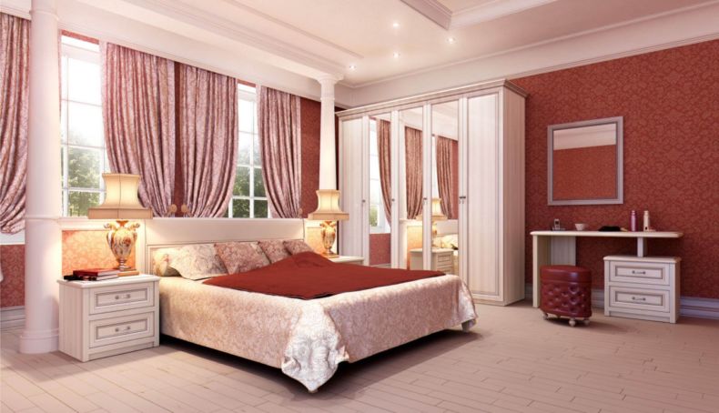 Как правило, по отдельности предметы мебели люди приобретают редко, обставляя комнату. Ведь при выборе целого спального гарнитура, у Вас будет настоящая единая композиция, в которой будет все в одном стиле, цвете и материалах. Исходя из того, какой будет модель, в комплект может входить разная мебель. В качестве необходимого минимума считается: кровать с шкафом и тумбочками, что и ставится в маленькие спальные комнаты. Если комнаты большие, их дополнительно комплектуют банкетками, комодами, туалетными столиками, мини диванами и креслами, пеналами и подвесными вариантами шкафов, зеркалами. Седи отрицательных моментов приобретения гарнитур, их неспособность делиться. Ведь, если Вам понравится что-то определенное, то отдельно предмет приобрести нельзя будет. В таком случае очень удобно, когда производитель предлагает модульную мебель для спальни. Это значит, что гарнитур будет все тот же, который Вам и понравился, в то же время производитель предусмотрел право выбора таких изделий, как: