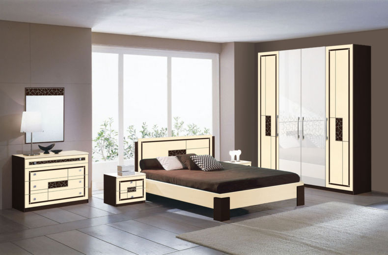 - Достаточно прочным и внешне эстетичным покрытием является эмаль, которую применяют при производстве мебели для спальни в современном стиле. Такой вариант очень распространен у дизайнеров в Италии. Изготовление мебели производится из глянцевых ровных деталей, а среди более дорогих вариантов элементы, на которых узор более объемный, нанесенный на основы при помощи специального фрезера. Очень эффектный вариант мебели покрытой эмалью, имеющей спецэффекты. Например, высокие глянцы, благодаря которым лакированные поверхности будут казаться довольно глубокими, эффект металлика, перламутра и просто блесток…