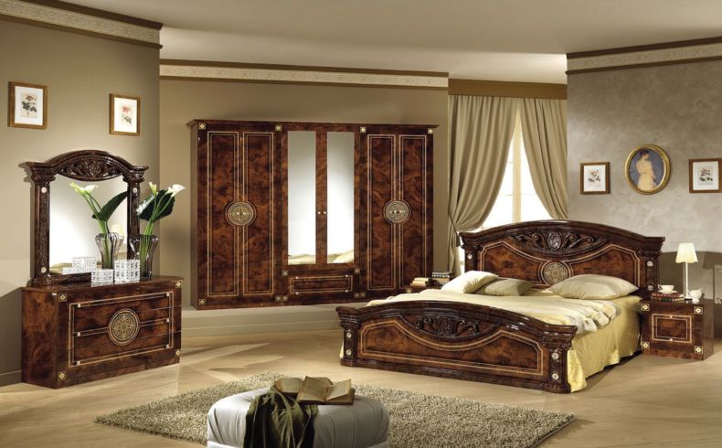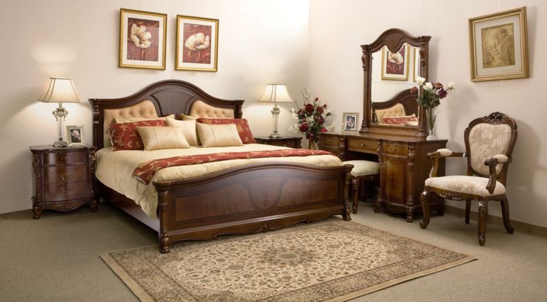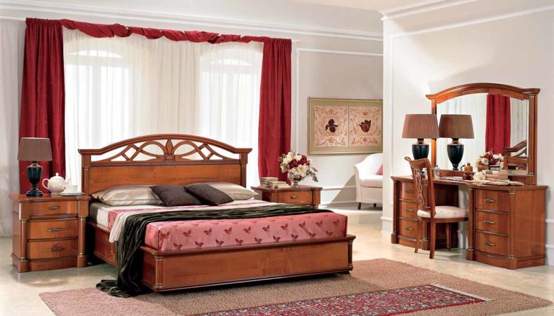 На современной обработке древесины производят красивейшие варианты очень качественной классической мебели для спальни. Сюда же относятся и резные варианты, с нанесением объемных 3д или других сложных рисунков. Благодаря автоматизированному производству цена на мебель из натуральной древесины снижена, тем не менее, ее качество и эстетические данные остаются все теми же. К основному отличию от иных вариантов относится – массовое производство, а не единичное, как это происходит с ручными работами.