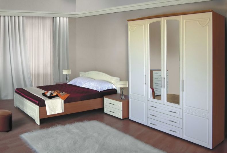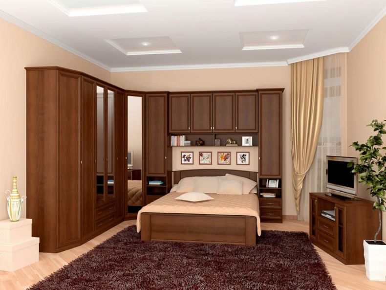 К основным преимуществам готовых/наборных вариантов мебели относится то, что производители предусматривают варианты типичных квартирных габаритов, когда были запущены серийные строительства. Модульные варианты спален также отличаются возможностью дособирать в будущем их при желании или надобности.