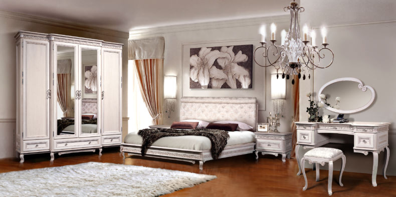 Если Вы не специалист, Вам может быть сложновато разобраться, чем отличаются эти стили. Так, в рококо мебель для спальни белая или кремовая, в тон под слоновую кость, ее украшают золотыми вставками, инкрустацией, обивку используют в пастельных тонах. А вот что касается мебели барокко, она в некоторой степени похожа на предыдущий вариант, но все же она более массивная, контрастная, монументальная, да и расцветка используется уже потемнее: бежевые тона, ореха и вишни, красного дерева, может быть и черного (ну, или почти черного).
