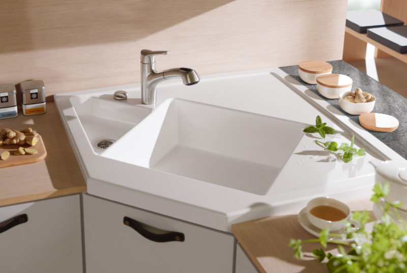 Перед выбором подходящей формы кухонной мойки оцените все возможности рабочей поверхности на кухне, чтобы определиться предельно точно, какая конструкция больше всего подходит под размер столешницы.