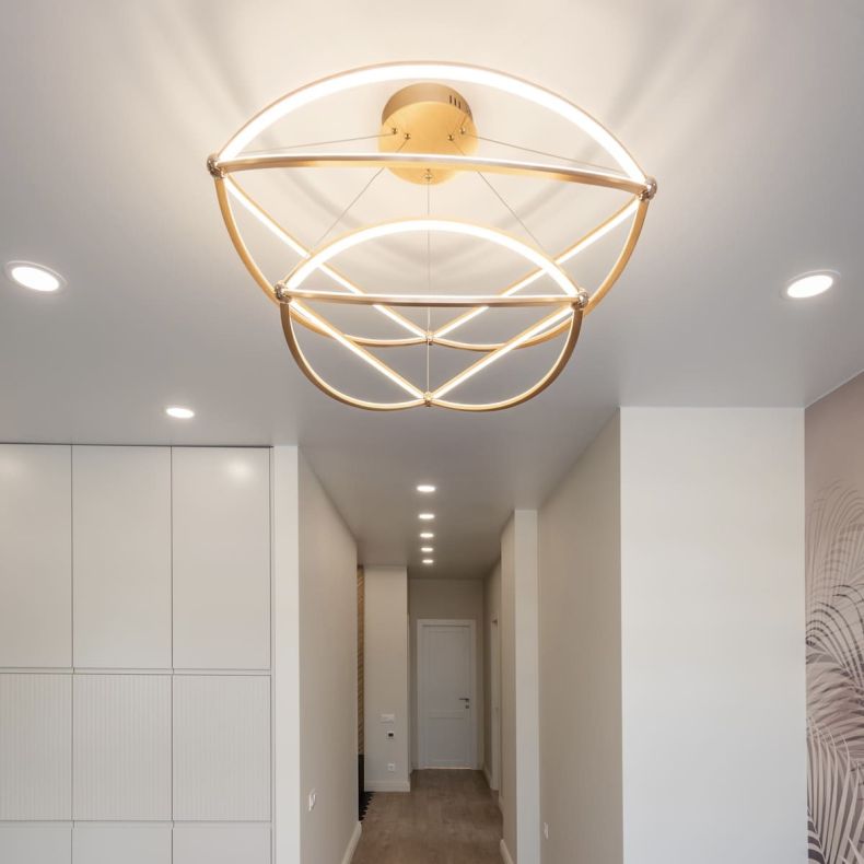 - Еще одним преимуществом натяжных потолков является их способность скрывать коммуникации: провода, трубы или вентиляционные системы. Кроме того, в конструкцию легко интегрировать светильники, создавая многоуровневое освещение или даже сложные световые инсталляции. Это открывает широкие возможности для реализации дизайнерских идей, придавая помещению индивидуальность.