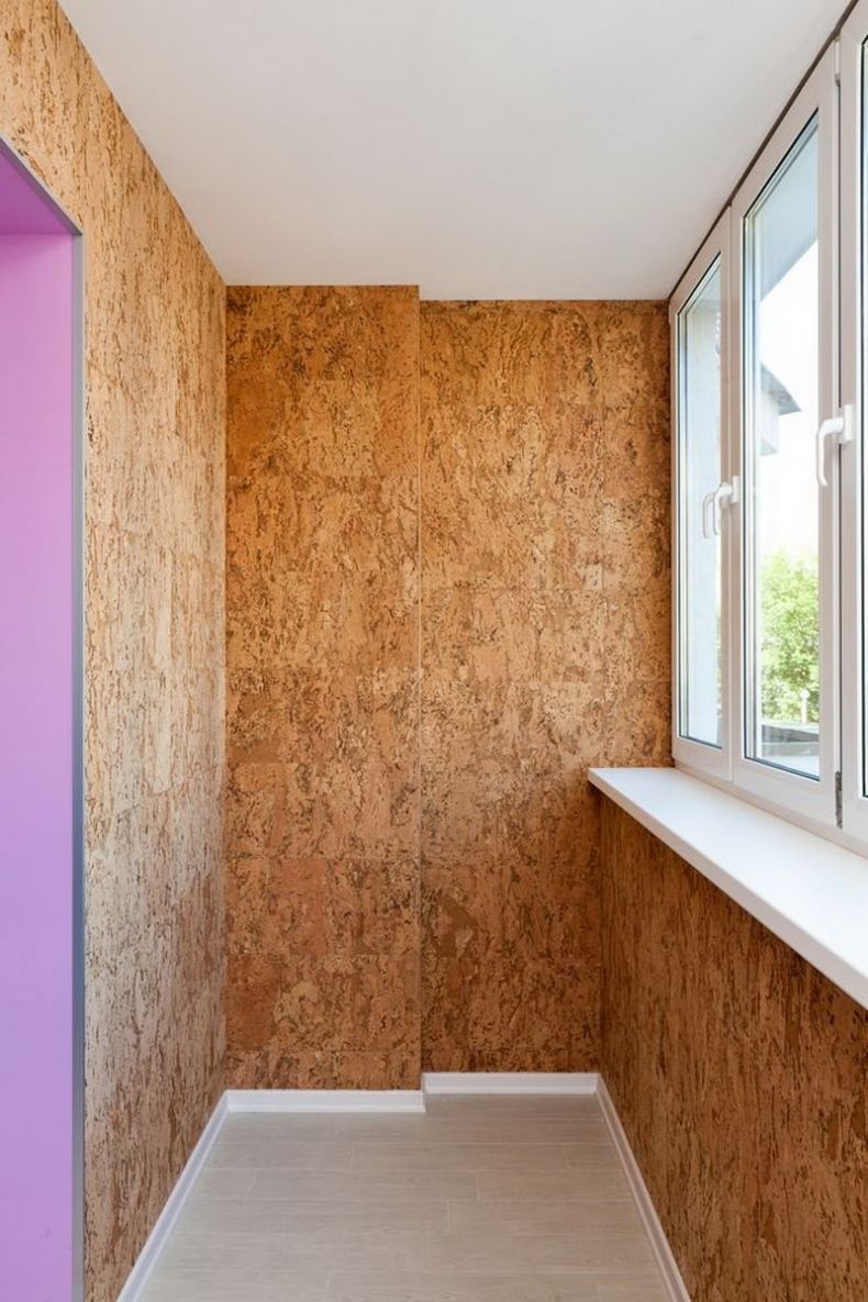 Пробка не разрушается под воздействием влаги, прямого солнечного излучения, поэтому панели из нее можно крепить без предварительного остекления и утепления. Кроме того, стоит упомянуть о звуко- и теплоизоляционных свойствах сырья. Оно не впитывает в себя запахи, и подойдет для оформления пространства возле кухни. За пробковыми поверхностями легко ухаживать, они не воспламеняются. По этом причине панели нередко выбирают для обустройства лоджии под кальянную.