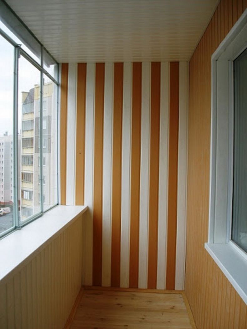 Рассмотрим несколько вариантов отделки балкона внутри: