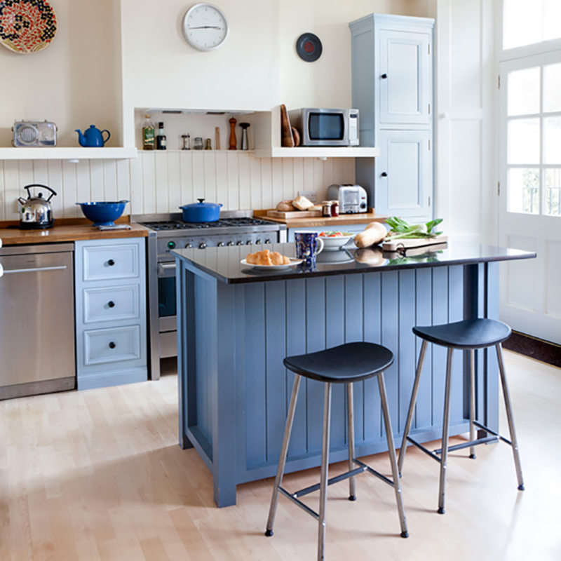 Если вдоль стен не получается уместить все элементы, один можно расположить в центре, как остров.