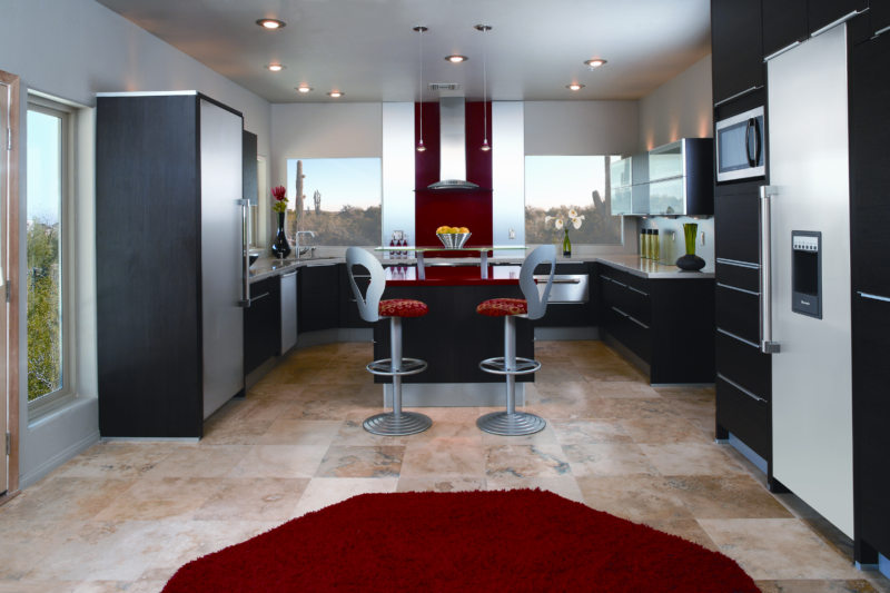 Очень удобной считается п-образная кухня, которая предусматривает что мебелью будут заняты три стены комнаты. Такие кухни лучше всего подойдут для помещений с большой площадью.