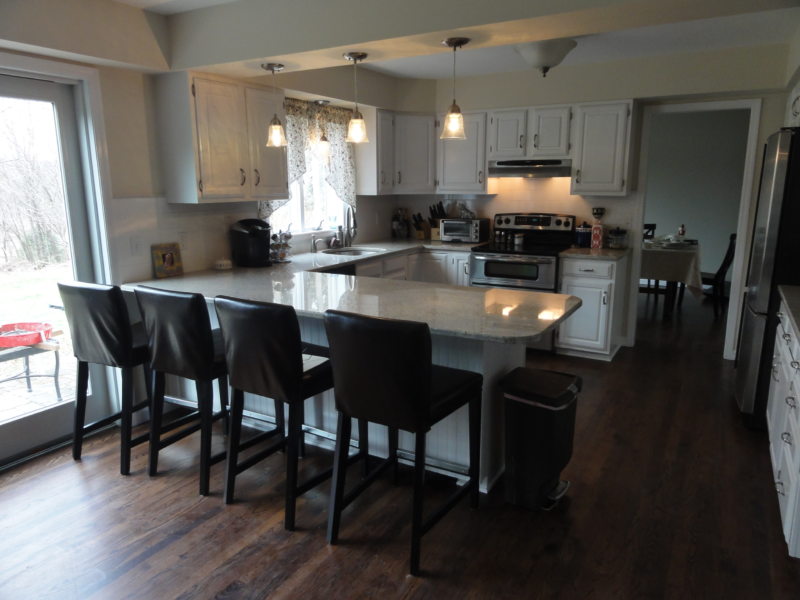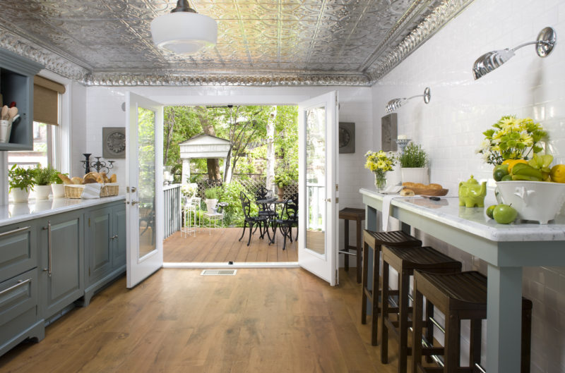 Такую кухню легко можно переделать в полуостровную или островную. Островом может стать обеденный стол. А полуостровом можно представить барную стойку со столиком для сервировки.