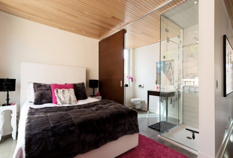 Стеклянная перегородка в спальне