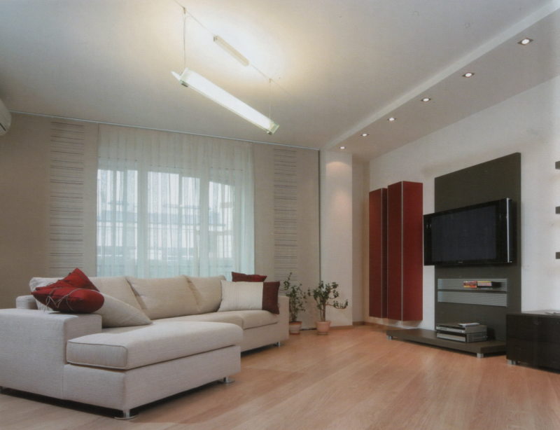 Оформляя интерьер гостиной в стиле минимализм, нужно понимать, что места мало, и нужно использовать малогабаритную мебель, которая не сможет полностью выполнять свою роль.