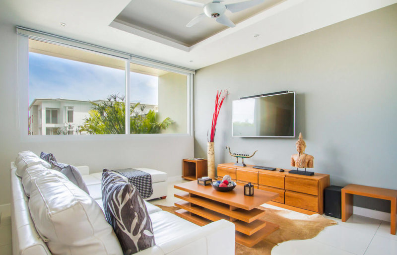 Выбрать удобную мебель тоже не очень сложно. Главное понимать, что для просмотра телевизора замечательно подойдет широкий диван с высокой спинкой.