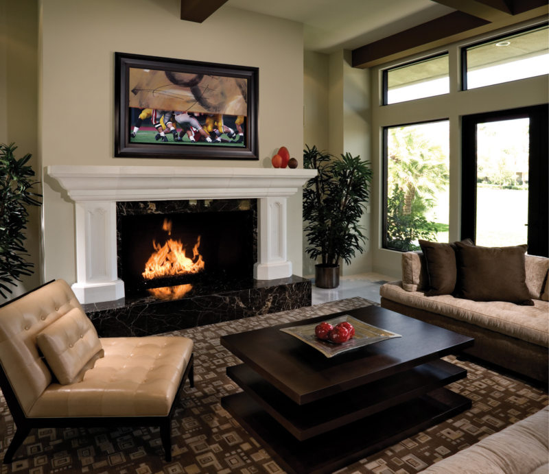 Рассчитать, как выполните планировку гостиной с другими объектами. Центром внимания должно быть что-то одно — или это камин, где возле него устраиваете семейные вечера, или телевизор, где вы все вместе смотрите фильм.