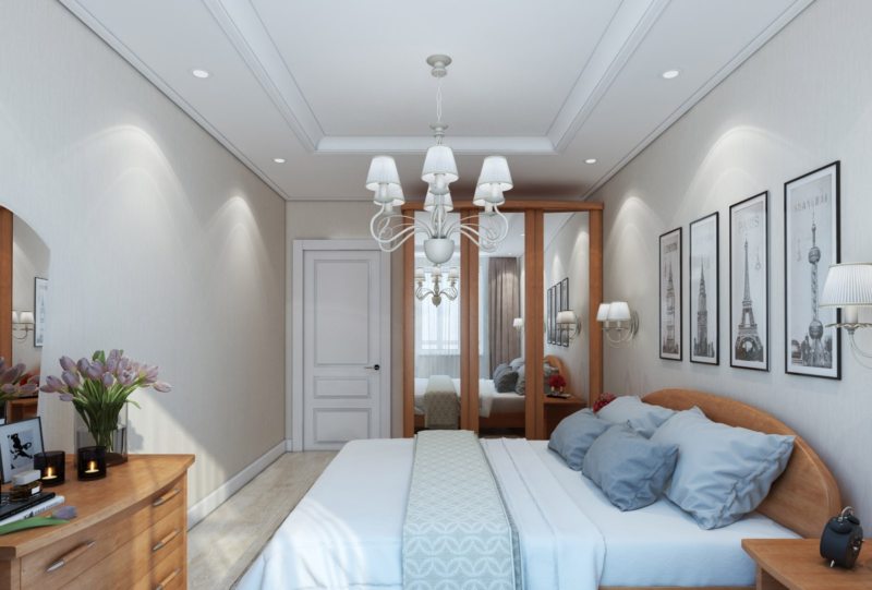 Если спальная маленькая, то никак не обойтись без шкафа, и в таком случае стоит отдать предпочтение шкафу-купе.