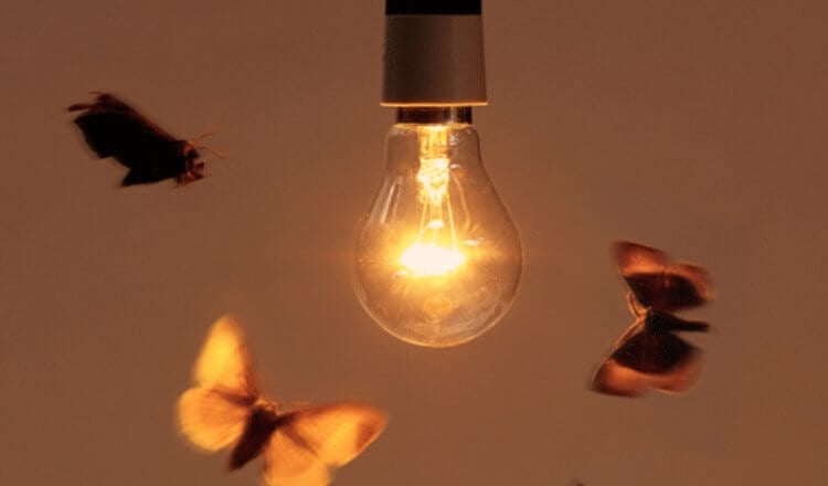 На самом деле мотыльки не любят собираться у лампочек — они просто попадают в ловушку. Источник изображения: kipmu.ru