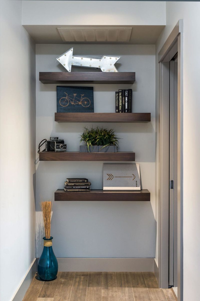 Если найти правильную полку, она станет не только помогать, но и будет красивым украшением дизайна.