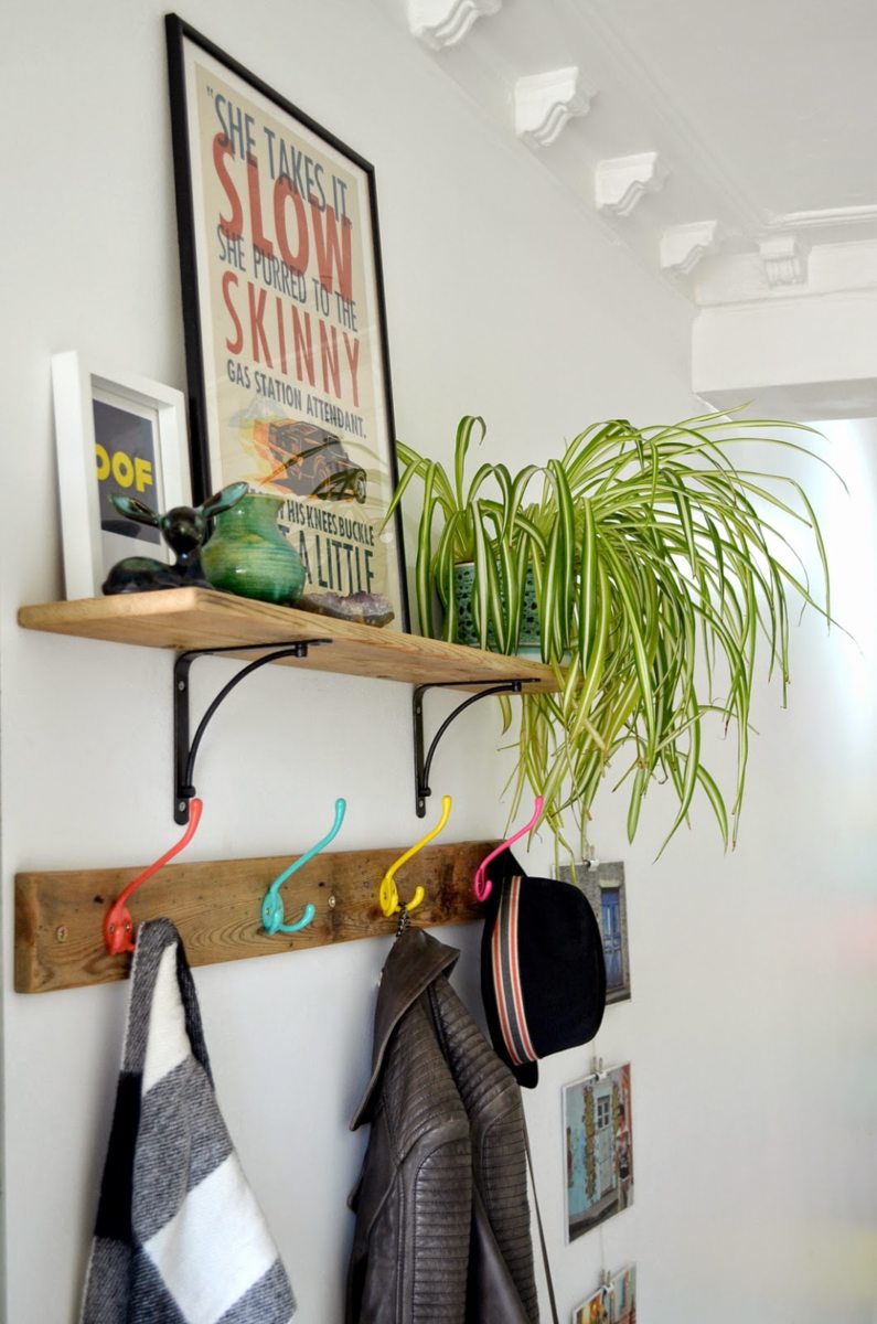 Даже если полка висит не в прихожей, а в любой другой комнате, она очень помогает в повседневной жизни. Очень удобно положить на нее шарф или шапку, что — бы они не валялись где попало и не потерялись случайным образом.
