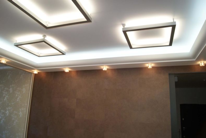 Двухуровневый потолок кроме того, что стильный и необычный, еще и функциональный.