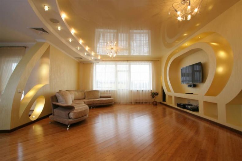 Потолок на кухне, в спальной комнате, особого декорирования не требует, в то время как гостиная комната — словно визитная карточка любого дома, и он должен быть идеальным.