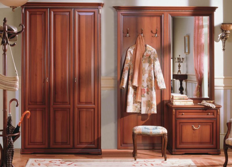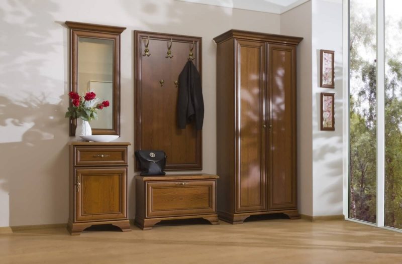 Не выбирайте слишком дешевую мебель, потому как прихожая в коридор из дерева должна выглядеть достойно.