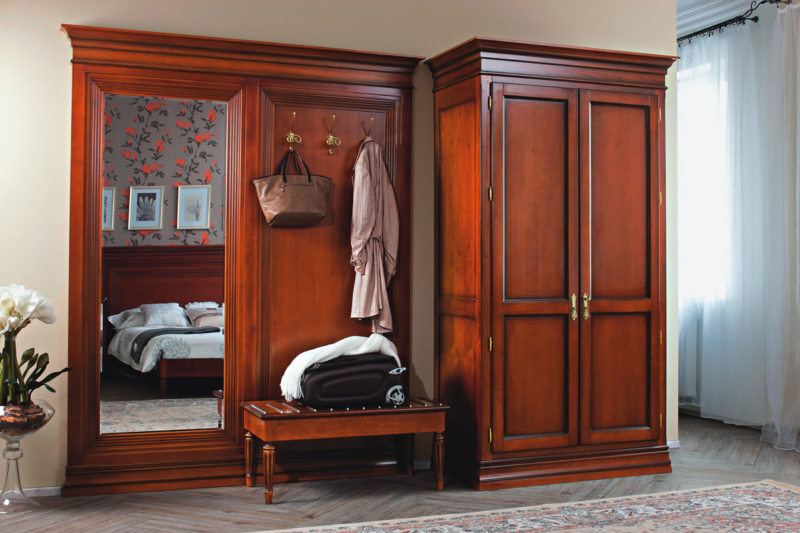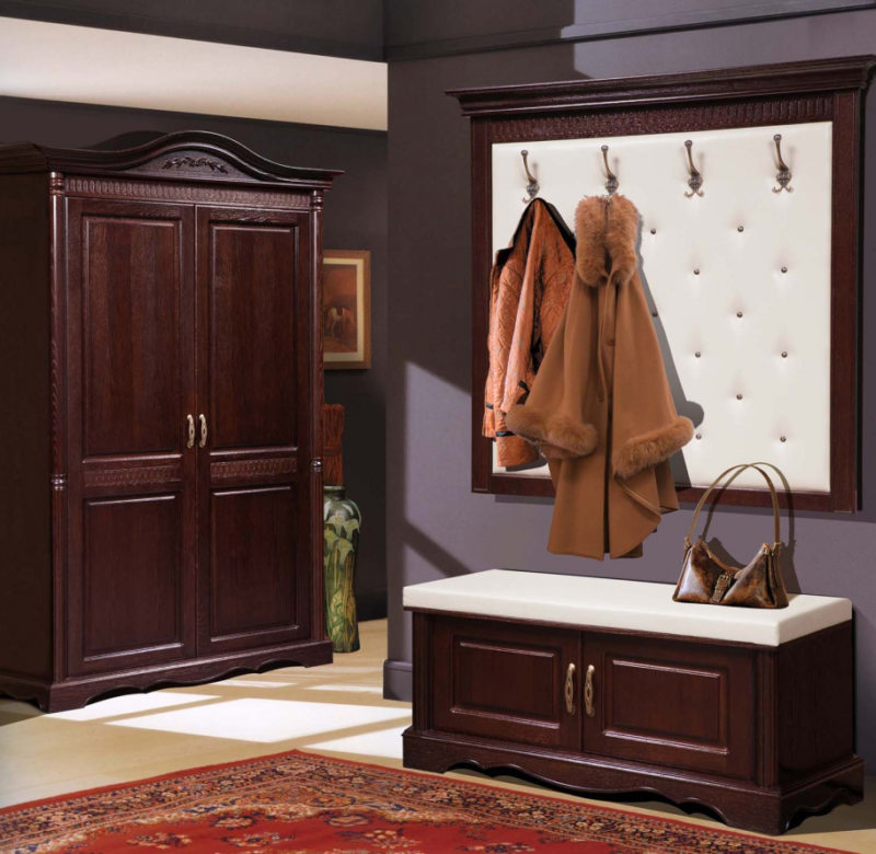 Кусок дерева в руках мастера, можно превратить в целое искусство. Так, мебель для прихожей из дерева украшают резьбой, разными способами декорируют. В течение времени, такие изделия не повредятся, так как выполнены из натурального материала.