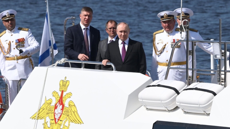 Путин в День Военно-морского флота в Санкт-Петербурге посетил фрегат «Адмирал Григорович», который в воскресенье участвовал в отражении атак БПЛА на Ленинградскую область. Президент за чашкой чая пообщался с боевым расчетом корабля.