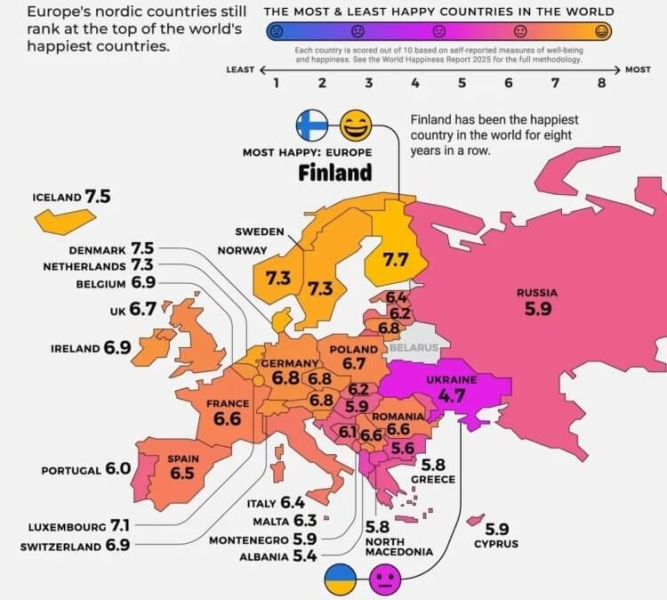 Самые счастливые страны Европы 2025: кто на вершине, а кто внизу рейтинга?