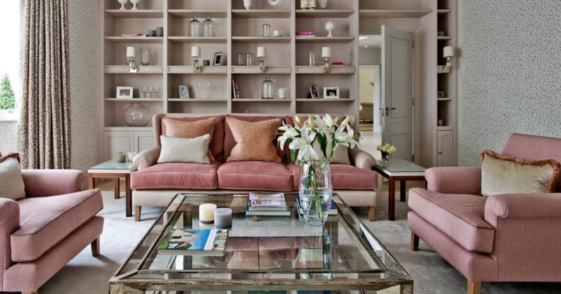 Самые распространённые оттенки для гостиной в розовых тонах.