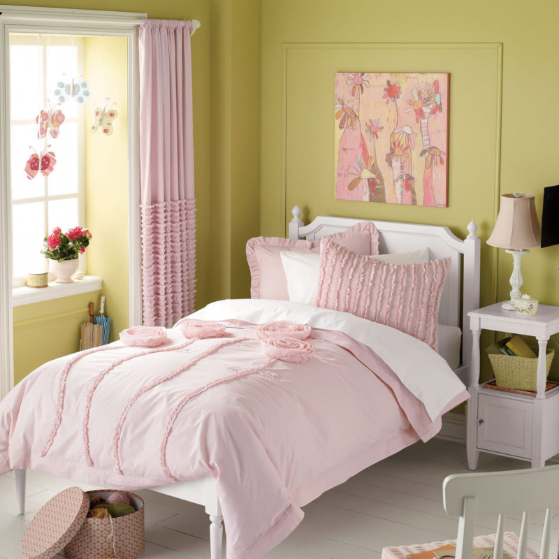Если больше по утрам — то, лучше всего выбирать светлые тона. Если в качестве основного вы выбрали розовый цвет, то пусть это будет нежно- или светло-розовый, в сочетании с другими светлыми оттенками.