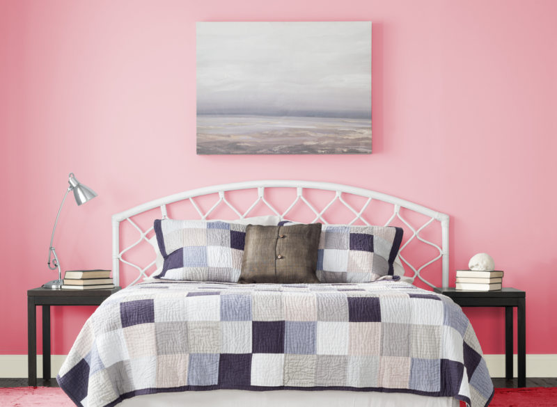 Оттенок фуксия подходит для особо экстравагантных личностей. Он красив и сочен, но в интерьере спальни этот цвет может перегружающе воздействовать на психику. Для смягчения его можно сочетать с белым.