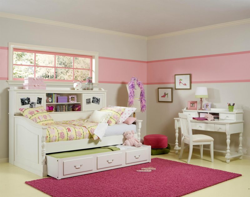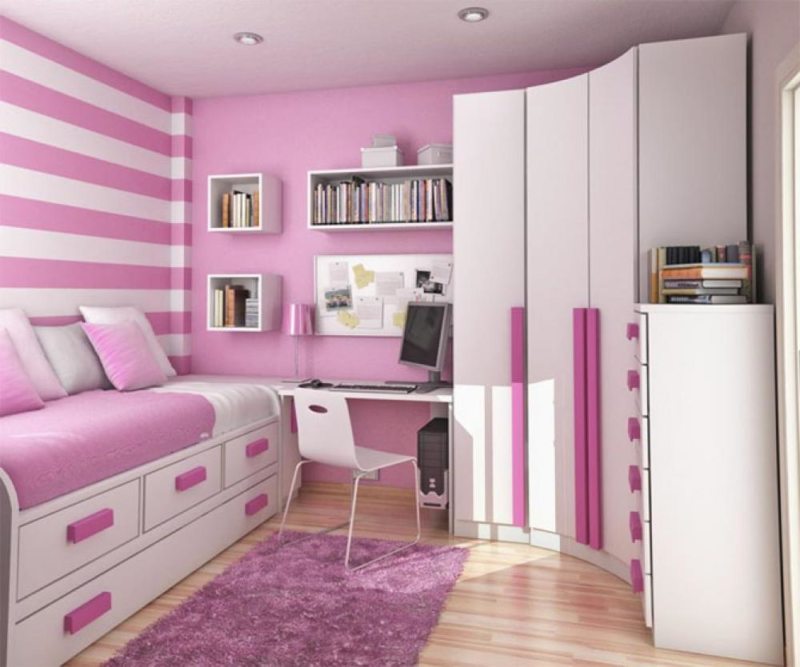 Бело-розовая спальня буде по вкусу молодым девушкам, так как такое сочетание цветов ассоциируется со сливочными зефирками, клубникой со сливками, с молодостью и нежностью.