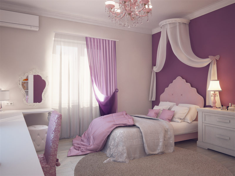 Спальня в розово-сиреневых оттенках будет наполнена особой изысканностью. Очень гармонично эти оттенки будут сочетаться с деревянной мебелью, паркетом или ламинатом темных древесных тонов.