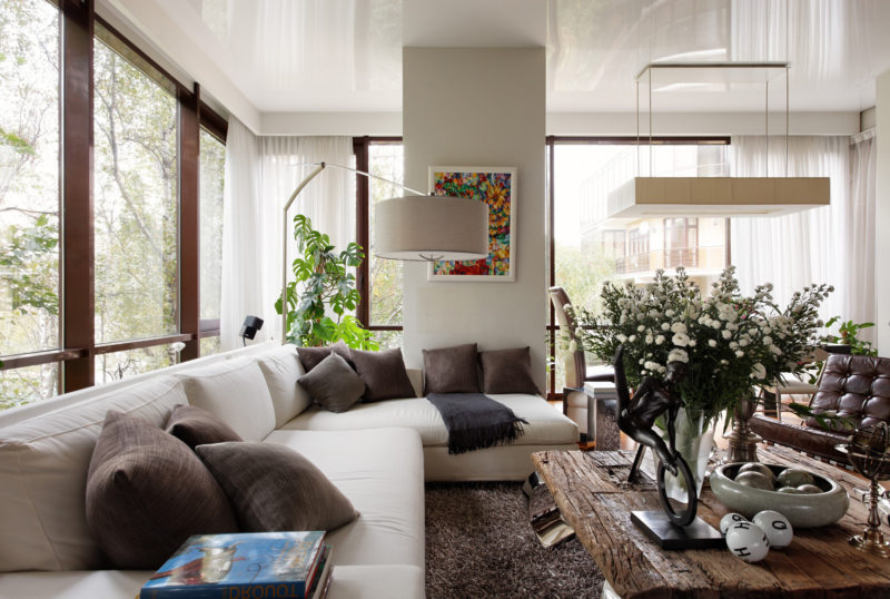 Серо – белая гостиная объединяет два похожих цвета. С их помощью можно создать самый стильный интерьер. Оттенки способны наделить помещение атмосферой уюта. Зачастую дизайнеры подбирают для оформления не чисто белые оттенки, а немного разбавленные, например молочный, бежевый, кофейный.