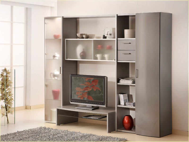 Стена именно такого тона со стеклянными и хромированными деталями сделает Ваш интерьер самым актуальным. Немного светлая гамма или соединение двух цветов позволят комнате излучать теплоту, и в то же время изящность. Светло – серый может выступать основным фоном для ярких элементов.