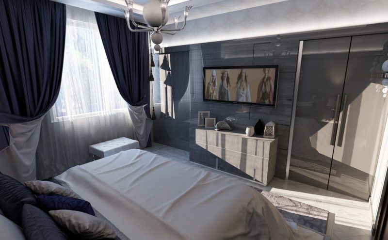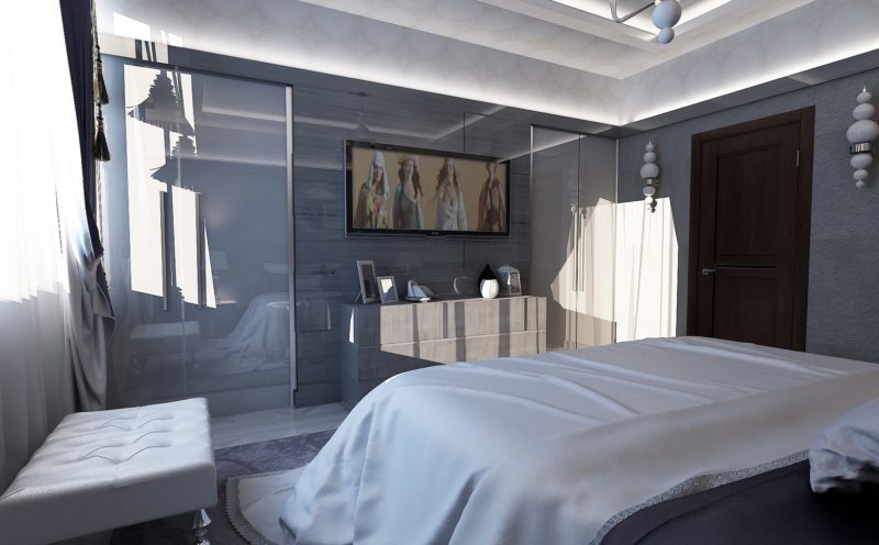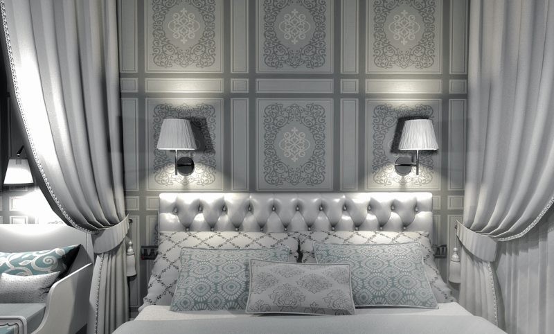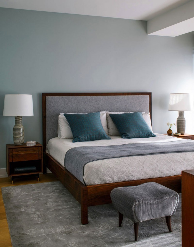 Спальня, в которой преобладают серого-голубые тона считается наиболее подходящим вариантом для супружеской пары. Главное не использовать насыщенных синих оттенков, которые, по мнению психологов, заглушают чувственность, что негативно сказывается на взаимоотношениях супругов.