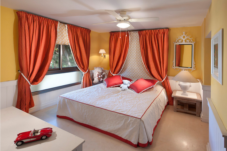 Согласно рекомендациям дизайнеров, стоит красный все же чередовать с различными вариантами нейтральных, светлых оттенков. Важно, чтобы он гармонично сочетался в основном интерьере комнаты. Варианты таких оформлений Вы можете увидеть в подборке наших фото. Идеальный вариант оформления спальной при помощи красного – темный красный в шторах, а кровать кованая, на которой будет дорогой текстиль точно такой же расцветки!