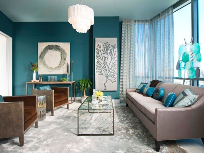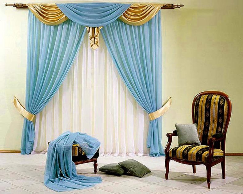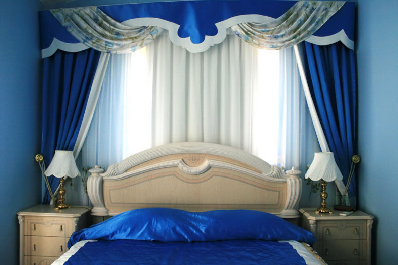 Несмотря на то, что этот цвет очень многие люди любят, в оформлении комнат его не всегда рискуют использовать. Ведь с ним комната может выглядеть холодно и неприветливо. Хотя, если дизайн оформлен правильно, можно убедиться в комфортабельности свежайшей, расслабляющей обстановки. Очень важно в таком случае подобрать именно тот оттенок, который Вам подходит, а также он должен сочетаться с иными интерьерными элементами. Шторы следует выбирать в холодных голубых оттенках для организации «свежего» пространства. Если же выбирать теплые оттенки, то окна должны выходить на северную часть света.