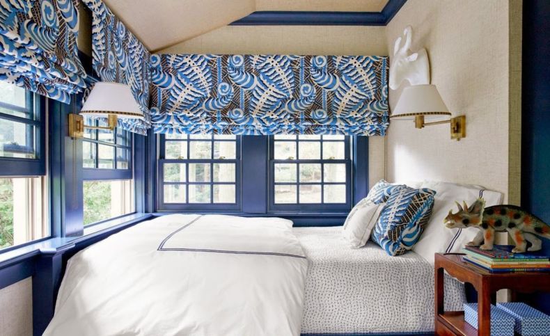 Голубой является цветом моря с воздухом, он положителен, жив. Оформление спальни в голубых оттенках поможет сделать так, чтобы Ваш сон был здоровый и расслабленный. Поскольку визуально голубые шторы способны увеличивать пространство, вполне обоснованно использование их в небольших спаленках, а также в случае с небольшими окошками. Голубой способствует организации мыслей, успокоению психики. Вариант просто идеален для оформления детской комнаты, а уж тем более, если малыш достаточно активен.