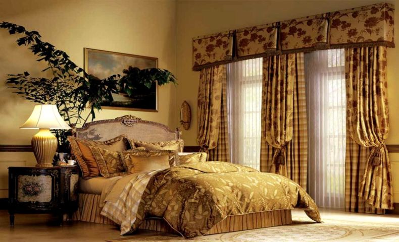 Основа классики в порядке и балансе и обязательно гармонии во всем. Обязательно выдержана традиция. Не используются современные элементы, а также новые тенденции. Здесь задача состоит в создании симметрии, которая должна быть идеальной, учитывая шторы с освещением и прочими мелочами. Все должно быть просто безупречно! Когда дизайнером уже выбран фокус спальни, уже отталкиваясь от него, производится расстановка иных предметов, дабы общее впечатление было усилено. Среди популярных вариантов цвета штор в спальню отмечают: темный синий, и темный зеленый, а также травы/земли, коричневые.